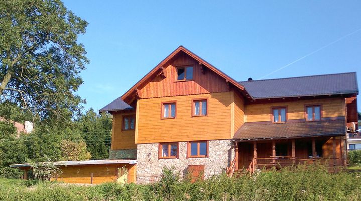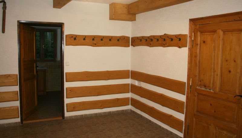 Vedle hlavního vchodu je prostorná uzamykatelná lyžárna (úschovna kol), 2x zastřešená terasa, ohniště s posezením.